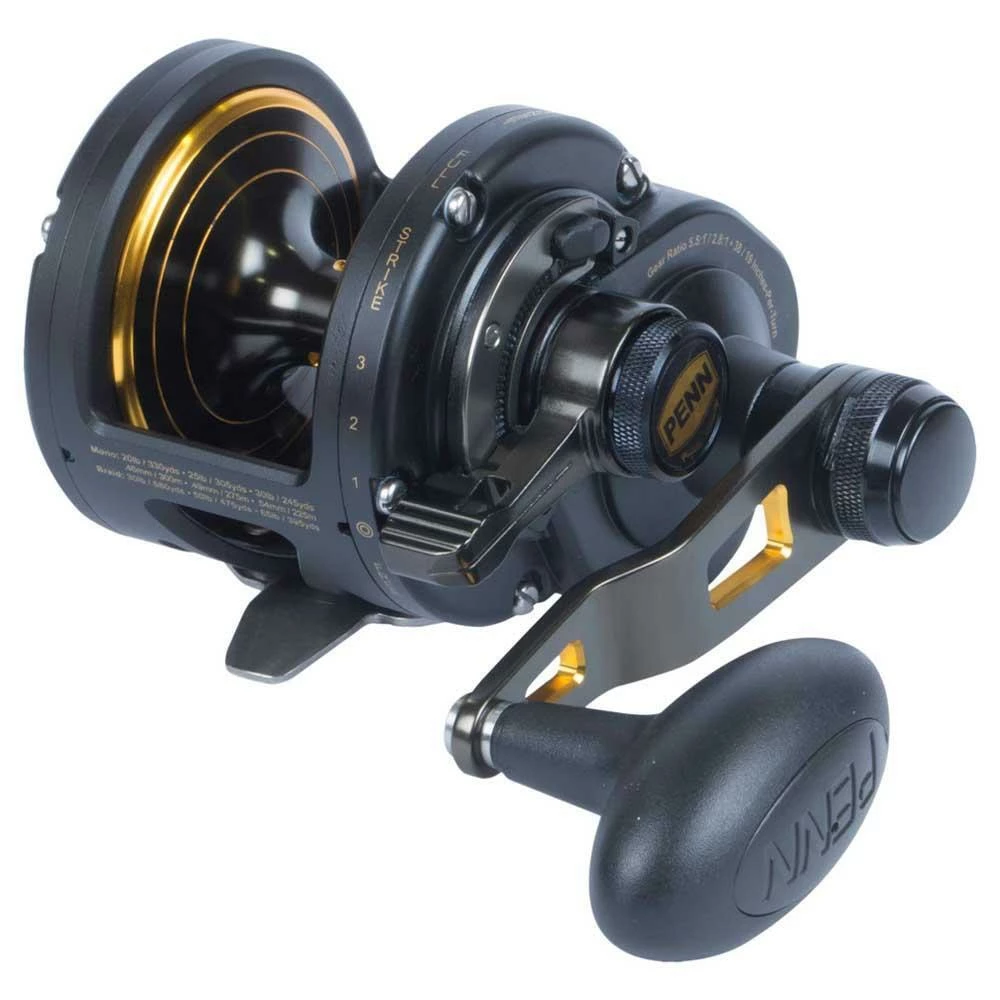 The PENN Fathom lever drag 2-speed series of reels are compact but loaded with big features. Featuring a Full Metal Body, stainless steel main and pinion gear, Dura-Drag washers, and a double dog ratchet anti- reverse you will find there is no stopping these reels.Β Line Capacity Rings:Β Capacities on spool are marked at 1/3rd, 2/3rd and full capacity.Β Dura-Dragβ’:Β Dura-Drag washers virtually eliminate hesitation, even under extreme drag settings.Β Braid Ready:Β Braid ready to handle the strain that braided lines put on a reel.Β Quick-Shiftβ’:Β The Quick-Shift 2-speed system easily shifts into high or low gear.Β Full Metal Body:Β Full metal body and sideplate keep precise gear alignment under heavy loads.Β Features